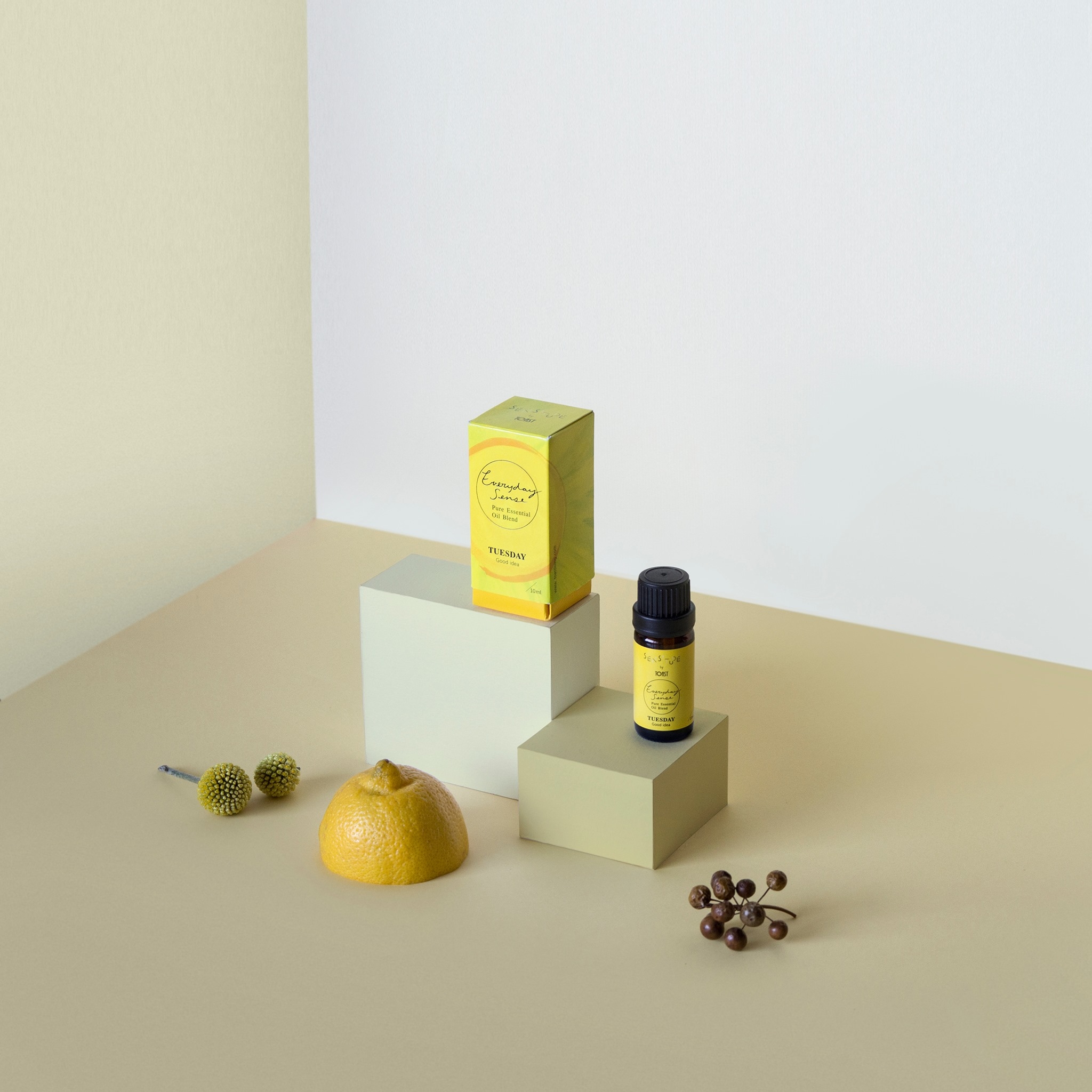 「EVERYDAY SENSE」精油,跳脫傳統香氛的印象,以「星期一」到「星期日」的每一天為名,強調時間與空間當中,香味生活感與個性的體現。全系列以純天然精油調製而成,採用香水調香的概念呈現個性空間香。在EVERYDAY SENSE中,將經過6:20的早晨、好靈感的瞬間、白日夢的甜蜜想像、被窩舒適的觸感、週五的雞尾酒、週末於野外森林中、於海邊看夕陽的悠閒。這些美好片刻,都被轉換具有設計感的家居香氛,獻上五感的好質地、記憶的回溯氛圍。