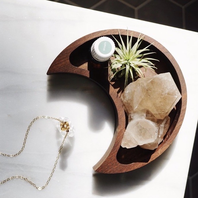 以最時尚獨特的方式在家中展示你最喜歡的精油、水晶、飾物或其他物品! 這個多功能胡桃木月亮收納盤是你的不二之選!