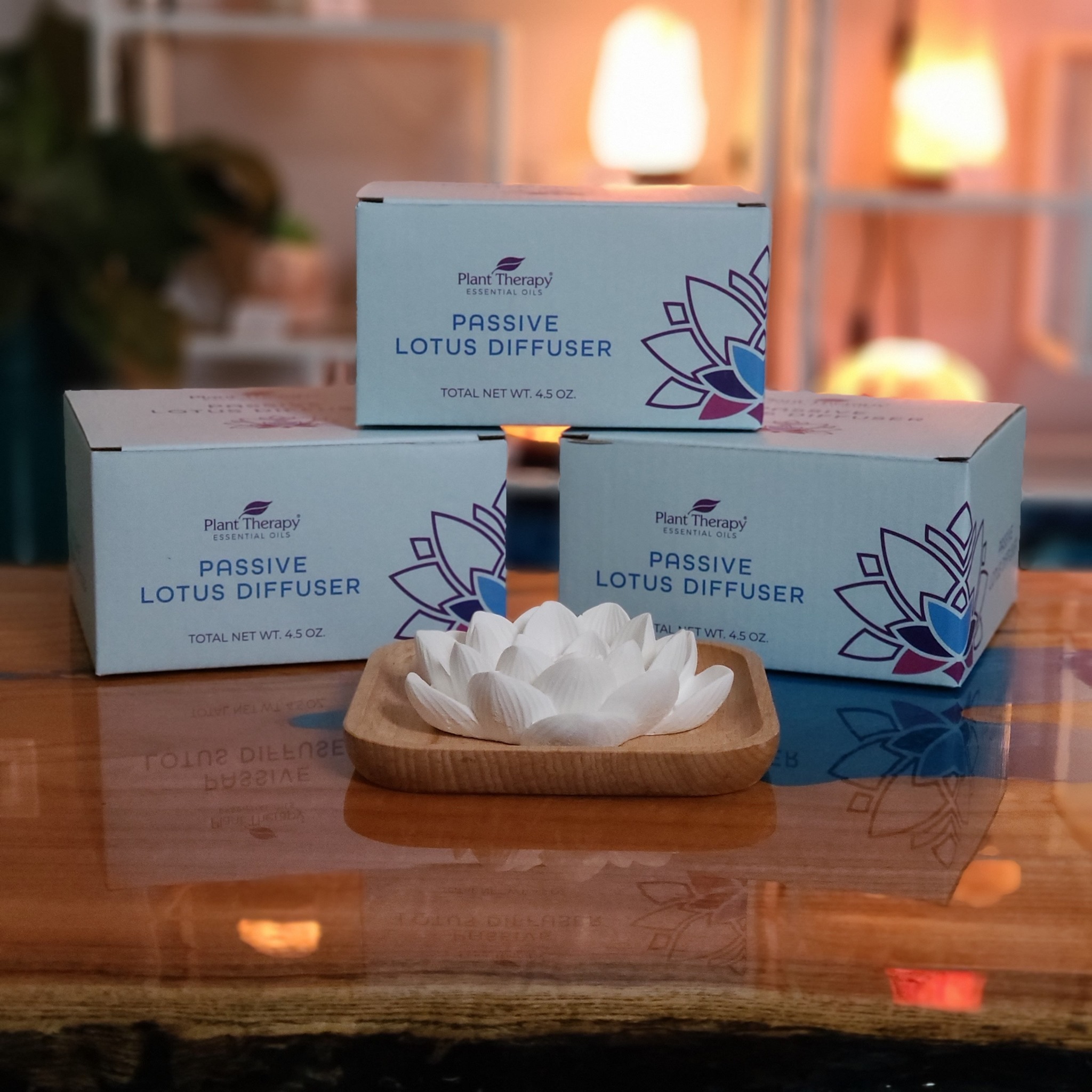 帶著輕禪意的蓮花擴香石,將5-6滴喜歡的精油滴在蓮花上,留下幾分鐘,讓精油吸收。搭配天然櫸木木盤,彷彿在大自然裡,聞著一股寧靜清香。