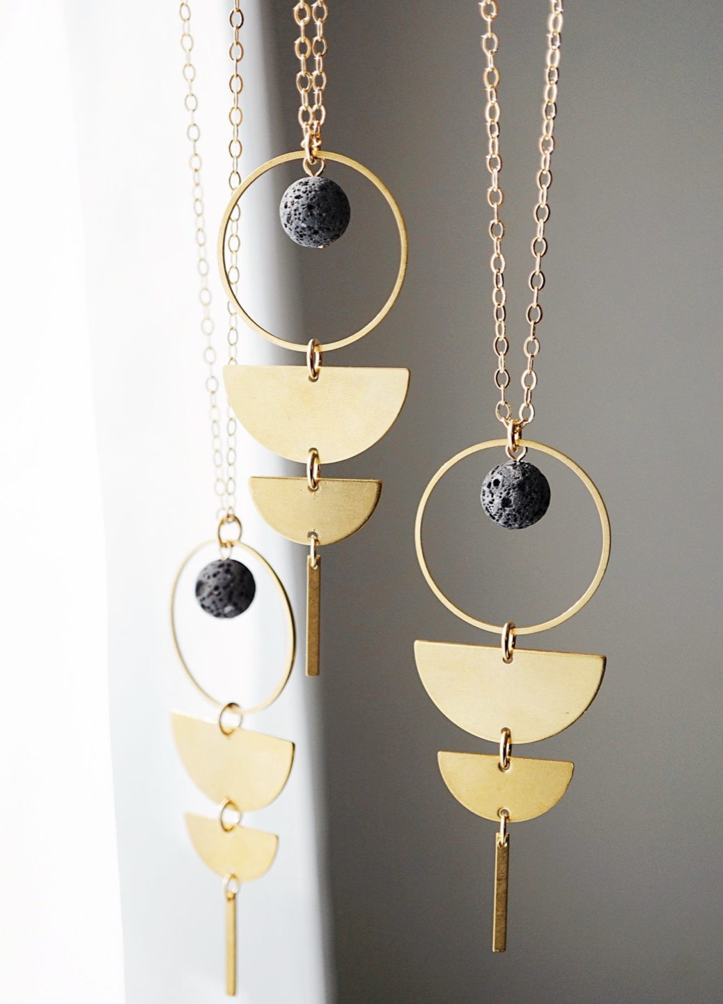 素材:14K鍍金頸鏈 / 黃銅環 / 火山石吊墜